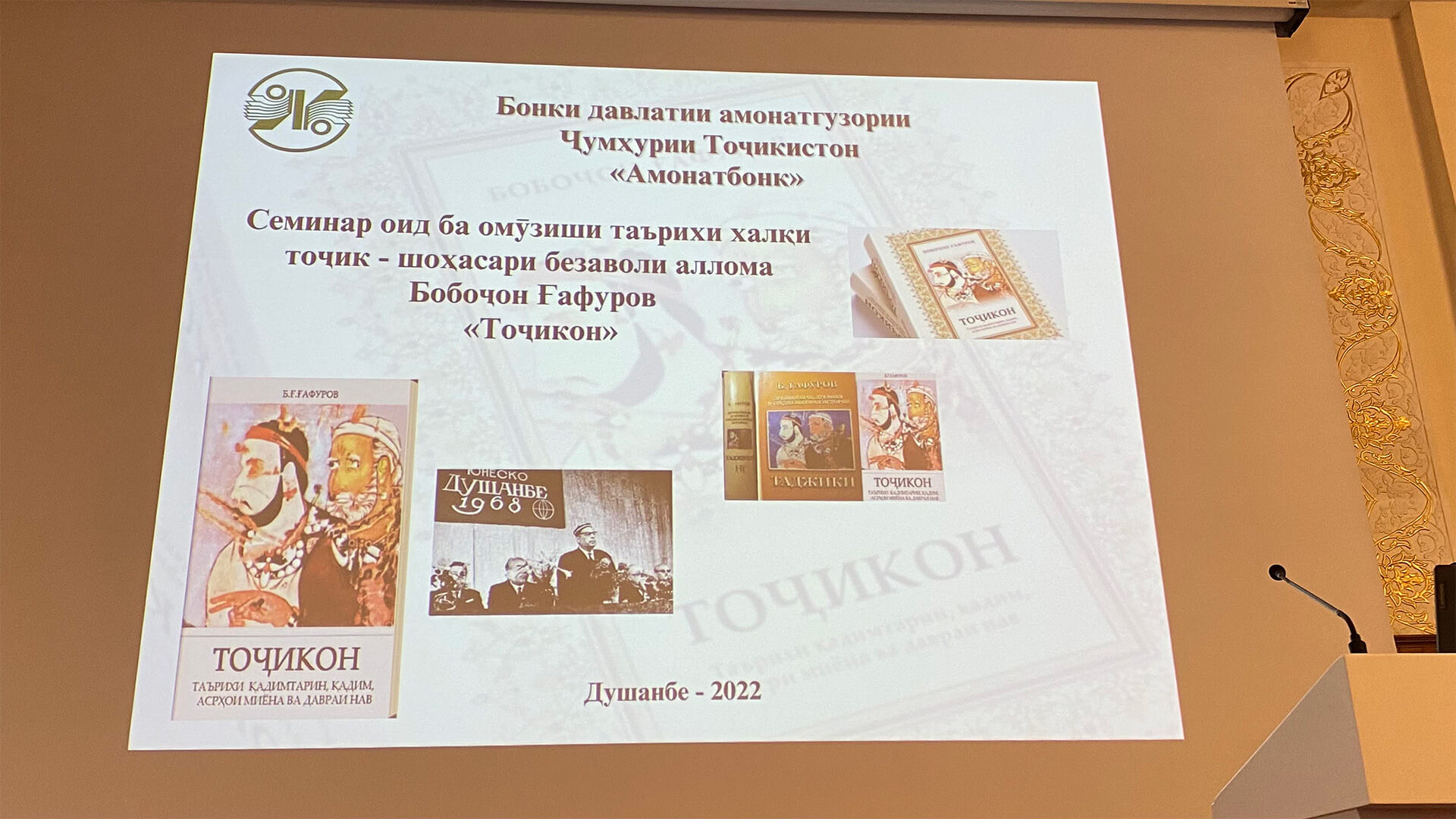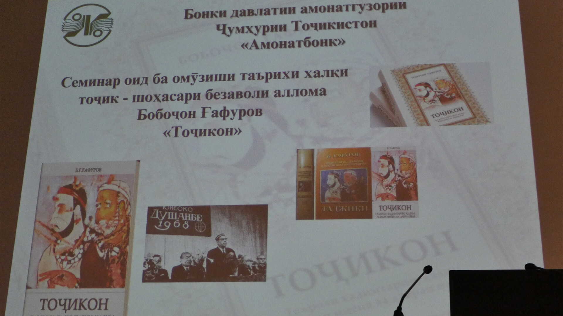 На основании инициатив Основателя мира и национального единства, Лидера нации, Президента Республики Таджикистан Эмомали Рахмона с целью почитания и изучения истории таджикского народа, воспитания подрастающего поколения в духе патриотизма и национальное самопознания, 16 июня 2022 года в Государственном сберегательного банке Республики Таджикистан «Амонатбанк» состоялся семинар по изучению истории таджикского народа, уникальной книге академика – Бободжона Гафуров «Таджики».